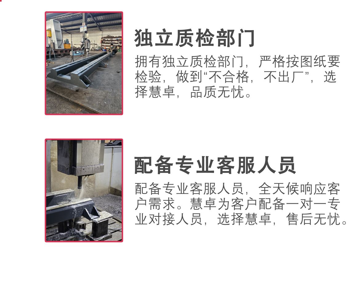 標(biāo)配久達(dá)導(dǎo)軌,擁有極高的剛性及精度,設(shè)備負(fù)載能力強(qiáng),壽命高;也可選配滾輪組作為導(dǎo)向系統(tǒng),對(duì)于環(huán)境中的焊渣、切屑等雜質(zhì)具有高度不敏感性。即使安裝上有少許的誤差,選用的大直徑滾輪仍可輕松運(yùn)行,具有良好的通過(guò)性。