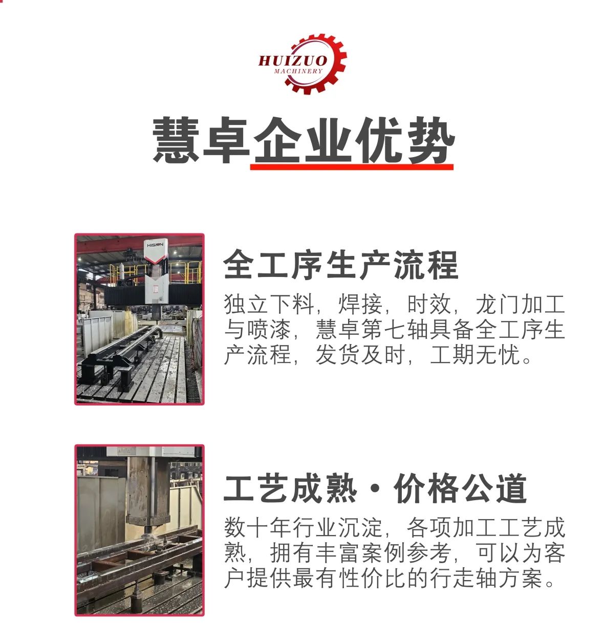 慧卓機(jī)器人行走軸使用伺服電機(jī)進(jìn)行驅(qū)動(dòng),通過(guò)精密減速機(jī)、齒輪、齒條進(jìn)行傳動(dòng),運(yùn)動(dòng)穩(wěn)定,重復(fù)定位精度高。